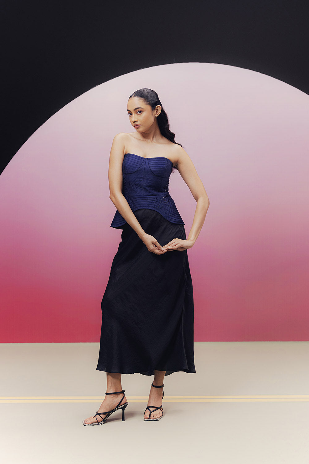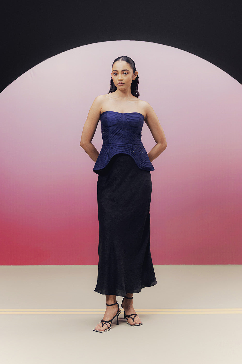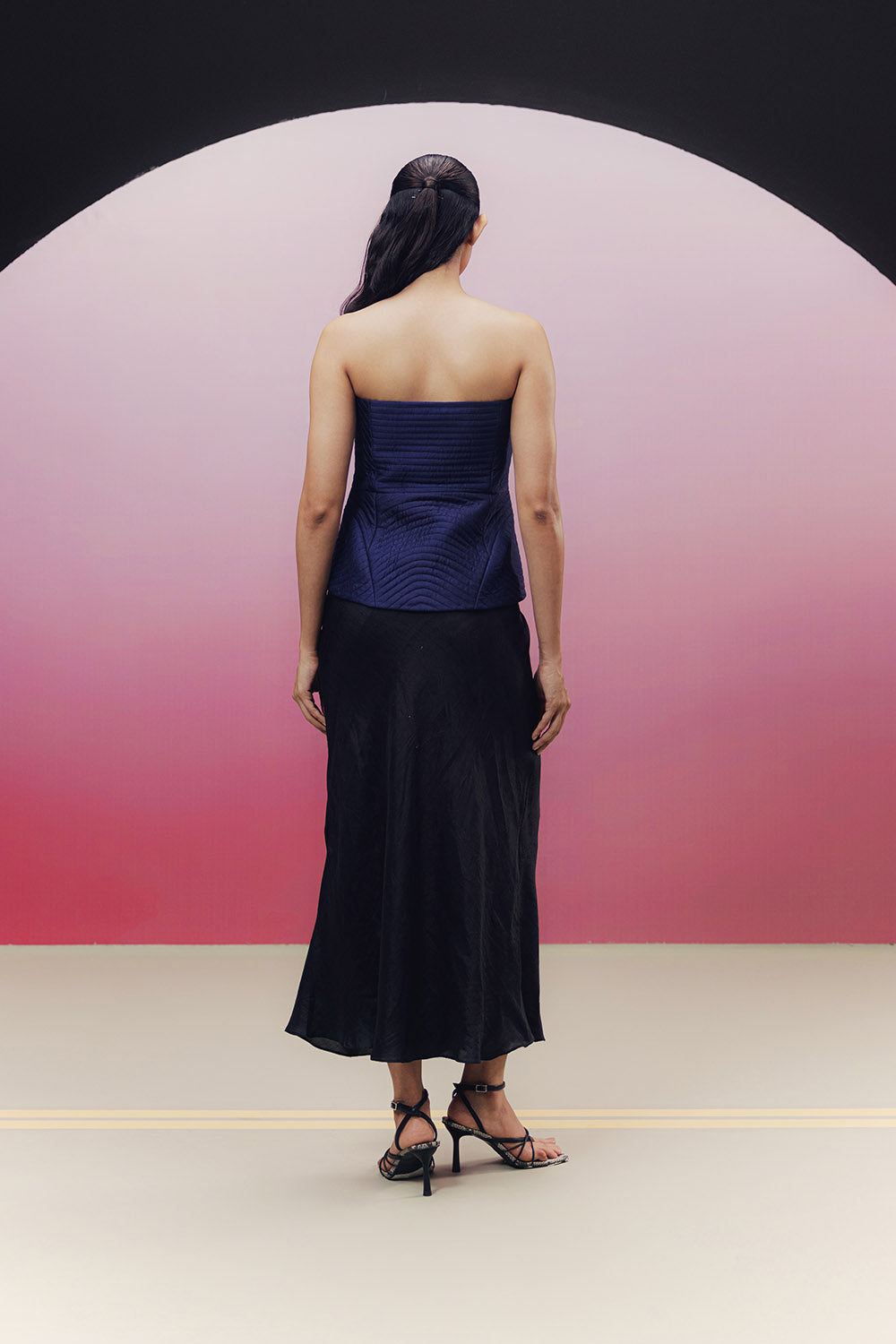 Handwoven, quilted mulberry silk corset top with a contrast lining and highlighted with scattered bead work