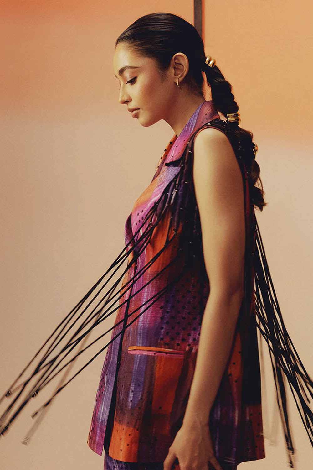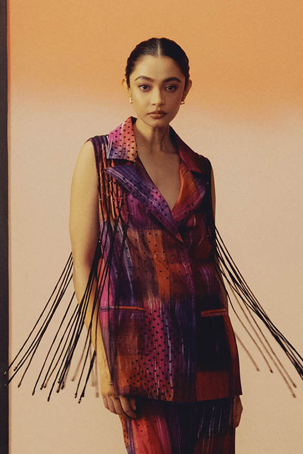 - Handwoven mulberry silk sleeveless blazer
