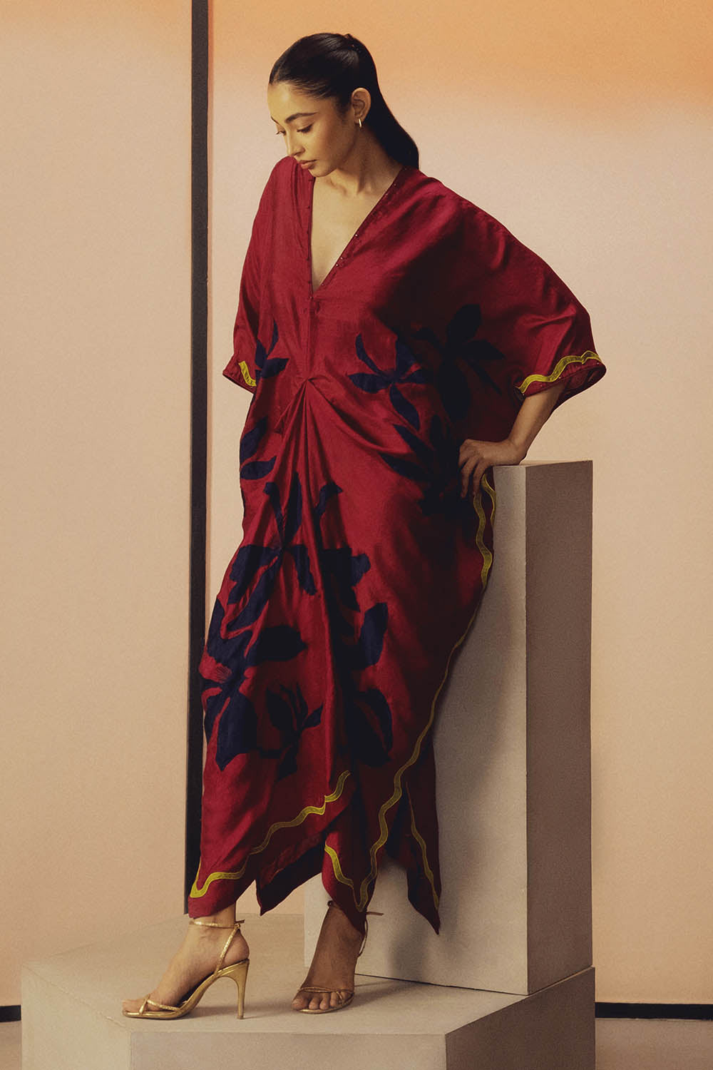 - Hand embroidered sequin work on the flowers and glass bead highlights on the neckline
