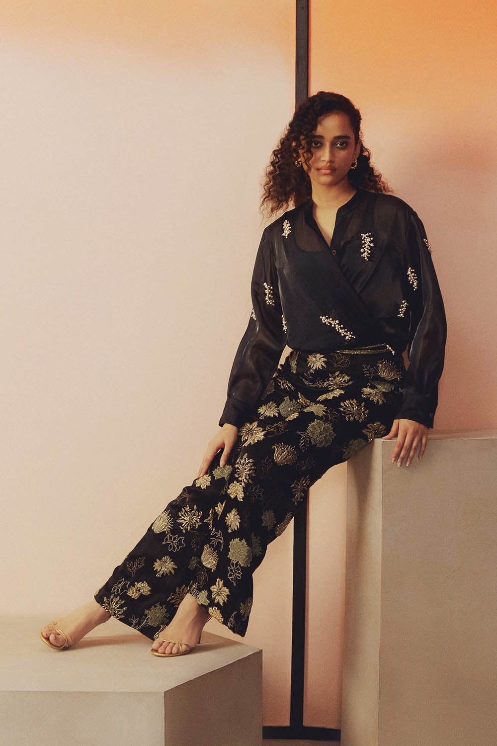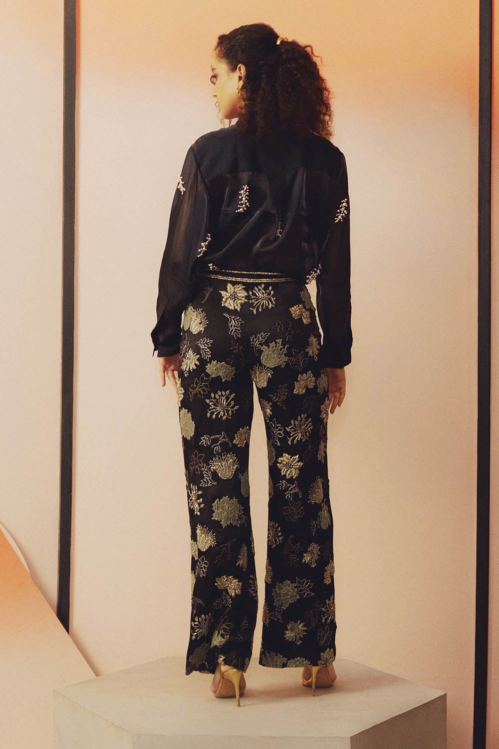 - Hand embroidered pearl work