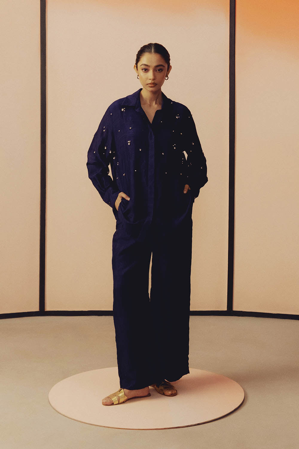 - Hand embroidered with pearl and glass beadwork